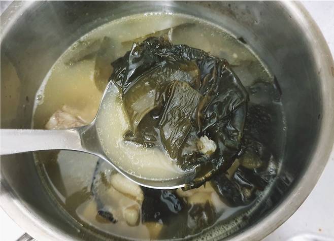 톳은 요오드 함량이 높아요. 미역의 1/5 이하만 넣으시는데 말린 톳 기준으로 한 꼬집이면 충분합니다. 무조건 많이 넣는다고 뼈에 더 좋은 것은 아니에요.
