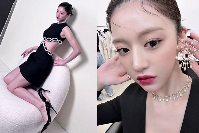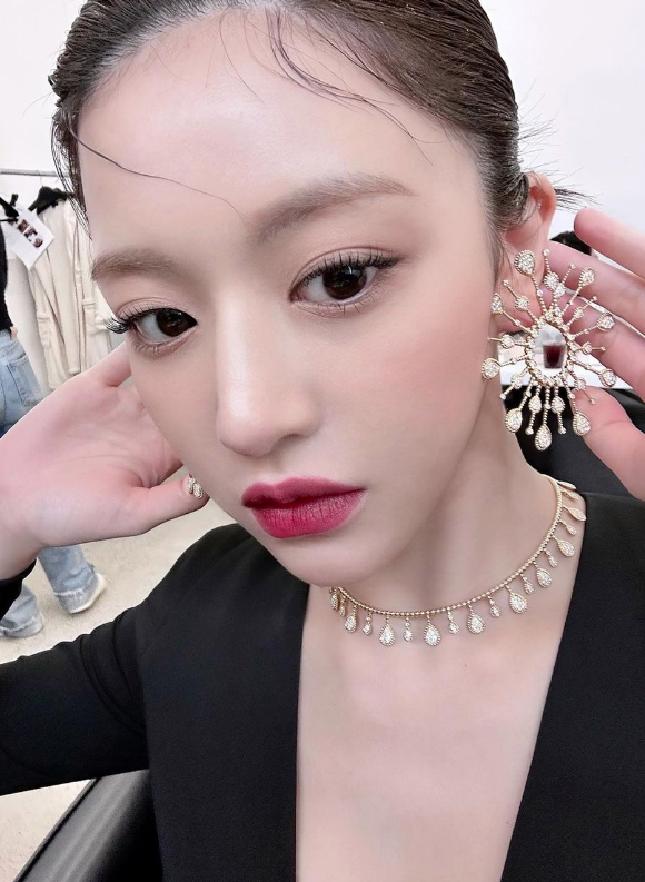 고윤정은 화려한 주얼리에 레드립메이크업으로 시선을 사로잡았다.