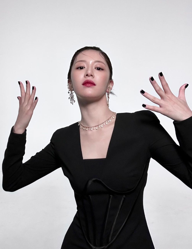 고윤정은 블랙 수트에 블랙 네일로 시크한 분위기를 자아냈다.