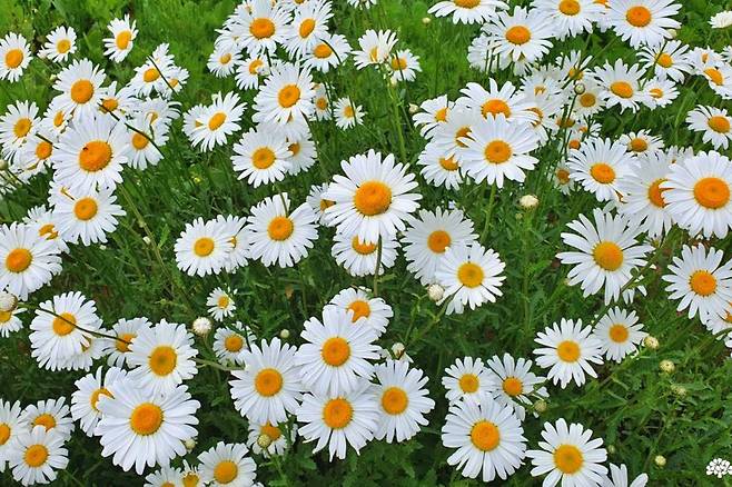 샤스타데이지는 향기가 강하지 않지만, 시각적인 매력은 압도적이다. 풍성하게 피어난 꽃들 사이로 바람이 스치면 꽃잎들이 일제히 흔들리며 마치 움직이는 화폭 같은 장면을 연출한다. 곳곳에는 아직 개화 전인 꽃봉오리도 남아 있어, 향후 며칠간도 절정의 풍경을 유지할 것으로 보인다.