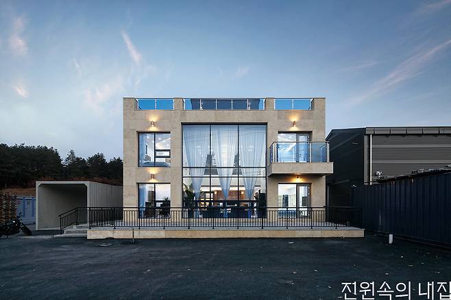 외부마감재 ≫ 벽 - 이집트산 라임스톤, Timber 강판 그레이&골드 / 지붕 - 정일요업 석재타일