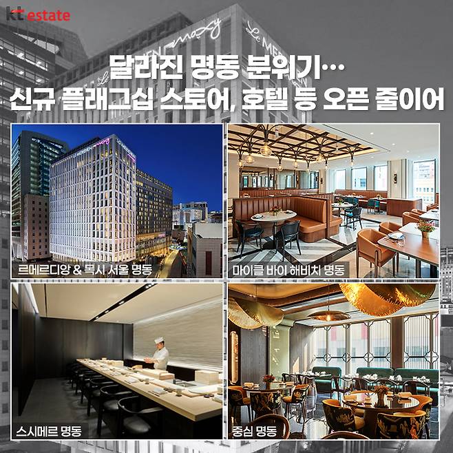 일선에서는 명동이 지금보다 더욱더 활성화되려면 무엇보다 명동에서만 접할 수 있는 콘텐츠를 통해 소비자가 새로운 경험을 하도록 유도할 필요가 있다고 하는데요. 앞으로 르메르디앙 & 목시 서울 명동 등을 비롯해 보다 독창적인 콘텐츠를 지닌 시설 등이 명동 상권 부흥에 긍정적인 영향을 미치길 기대해 봅니다.