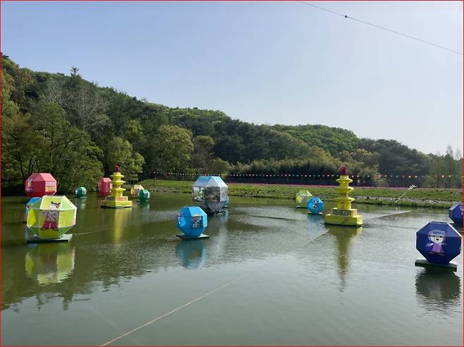 각원사에 이르는 길은 그 자체가 하나의 불법을 상징합니다. 사찰 초입에서 마주하는 **연화지(연못)**는 맑은 물 위로 알록달록한 연등이 걸려 있어 참배객들의 발걸음을 따뜻하게 맞이합니다.
