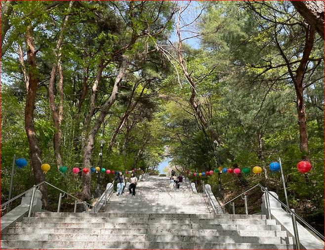 203 계단을 오르고 내려올 때면 단순히 발걸음을 옮기는 것이 아니라, 스스로를 돌아보는 짧은 수행의 길을 걷는 듯한 기분을 느낄 수 있습니다.