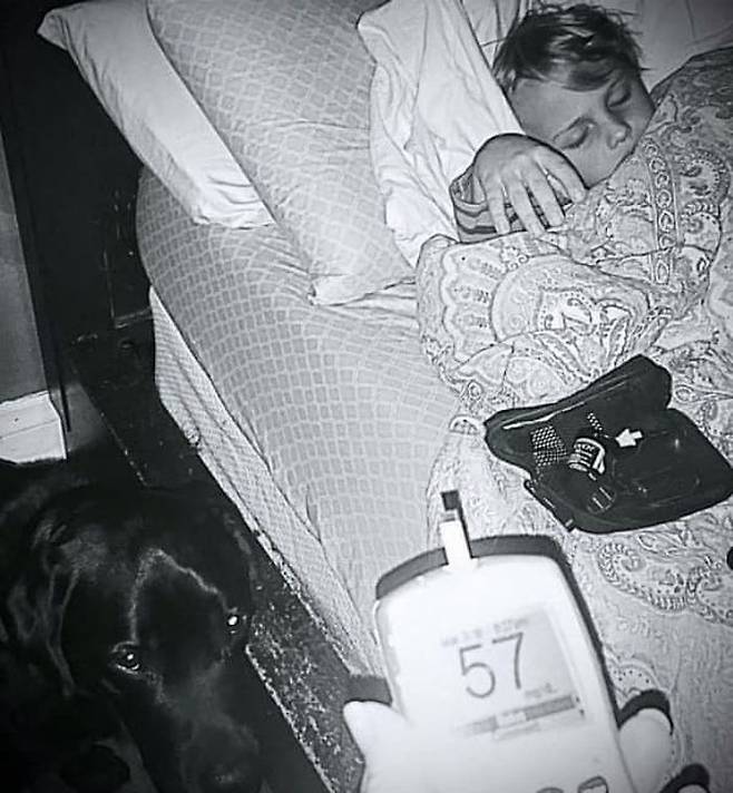 반대로 혈당이 너무 높아지면, 마치 "주인님, 검사할 시간이에요"라고 말하듯 혈당 측정기를 물어다 줍니다.