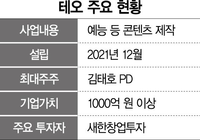 MBC 출신의 김태호 프로듀서(PD)가 설립한 콘텐츠 제작사 '테오'가 국내 벤처투자 시장에서 약 1000억 원의 몸값을 인정받았다.