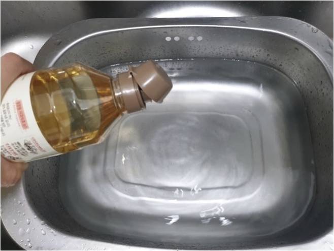 완벽하게 잔류농약을 제거하기 위해서 다시 한번 물을 받아 식초를 넣고 10분 정도 담가준 후 흐르는 물에 2~3번 헹궈주면 끝~