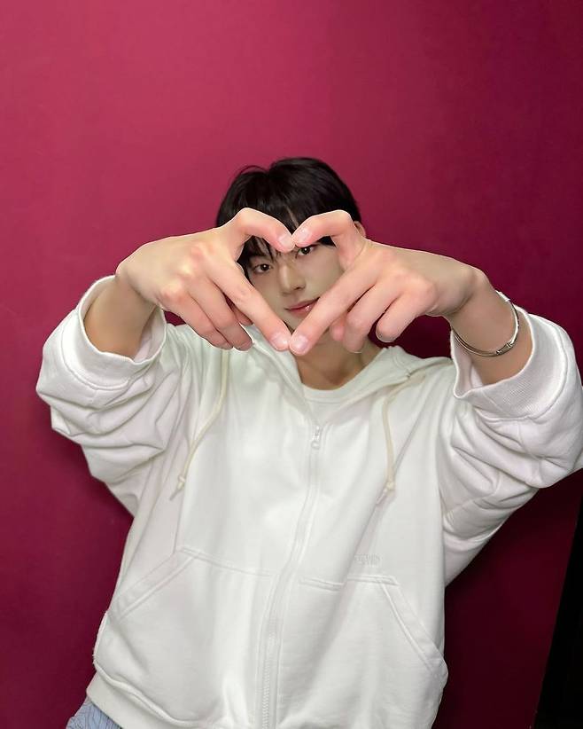 TWS 멤버 도훈이 인스타그램을 통해 공개한 사진이 팬들의 마음을 제대로 저격했다. 진한 자주색 배경 앞에서 화이트 집업 후디를 입고 손가락 하트 포즈를 취한 도훈은 꾸밈없는 매력으로 눈길을 사로잡았다. 그의 패션은 ‘심플함 속의 청량함’이라는 콘셉트를 그대로 보여준다.