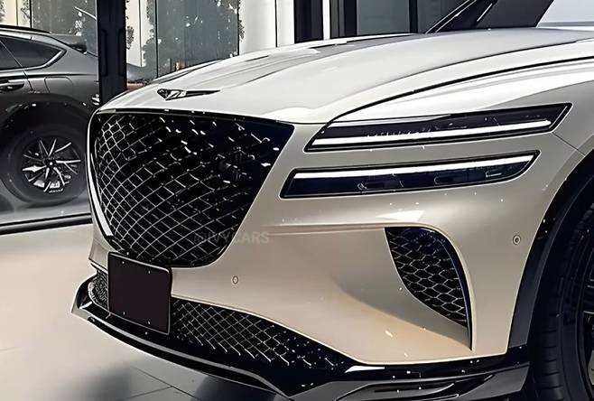 제네시스의 상징과도 같은 ‘두 줄’ 쿼드 램프는 그대로 유지되지만, 그 형태는 더욱 날렵해지고 얇아져 한층 진화한 모습을 보여줍니다. 얇아진 헤드 램프는 차량의 전면부를 더욱 와이드하고 역동적으로 보이게 하며, 동시에 절제된 고급스러움을 강조합니다. 이는 마치 첨단 기술과 예술적인 미학이 조화를 이룬 듯한 느낌을 선사합니다. 라디에이터 그릴과 보닛 라인 역시 과거 모델보다 훨씬 입체적인 실루엣으로 변화했습니다. 단순한 곡선이 아닌, 빛의 흐름에 따라 드라마틱하게 변하는 면의 조형미를 통해 차량의 존재감을 더욱 부각시킬 것으로 예상됩니다. 일부 예상도에서는 과거 렉서스 SUV에서 볼 수 있었던 정교하고 아름다운 라인의 재해석을 엿볼 수 있어, GV80 풀체인지가 보여줄 디자인 완성도에 대한 기대감을 더욱 높이고 있습니다. 이러한 디자인 변화는 GV80이 단순한 이동 수단을 넘어, ‘움직이는 예술 작품’으로서의 가치를 지향하고 있음을 명확히 보여줍니다.