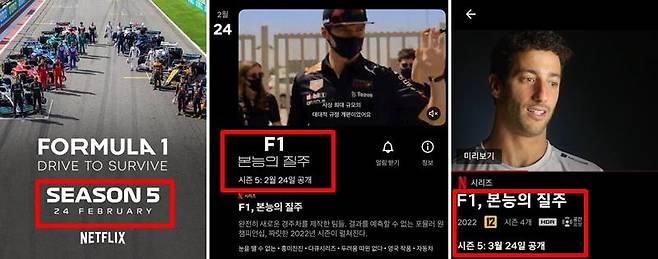넷플릭스서비시스코리아는 그동안 F1, 본능의 질주 시즌5가 글로벌 일정과 동일하게 2월 24일 공개한다고 홍보해 왔다. 하지만 넷플릭스 홈페이지에 따르면 현재 F1, 본능의 질주 시즌5의 공개일은 다음달 24일로 수정돼 있는 상태다.