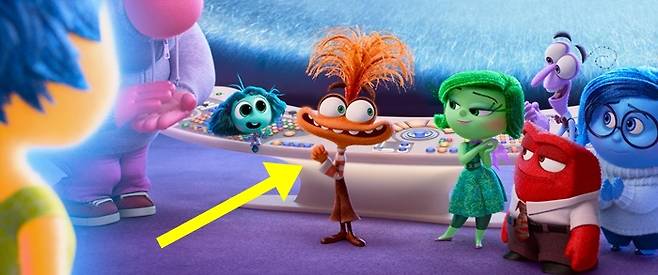 이어 기존 감정들 앞에 불안이라는 새로운 감정이이 나타나고 이에 잔뜩 경계하는 기존 감정들의 모습도 확인할 수 있다. 불안이 외에도 당황, 따분, 부럽이 등 새로운 감정들이 등장해 라일리의 심리를 표현한다.