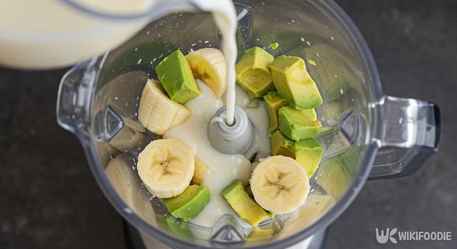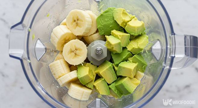 껍질을 벗긴 아보카도와 바나나는 작게 잘라서 믹서에 넣는다. 이어 우유도 넣는다. 우유를 적게 넣으면 꾸덕한 질감이 살아나고, 많이 넣으면 마시기 부드럽다. 양은 기호에 따라 조절하면 된다.
