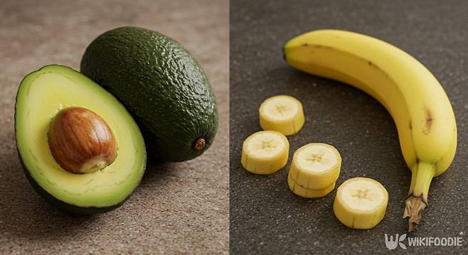 1. 아보카도와 바나나 껍질을 벗긴다.