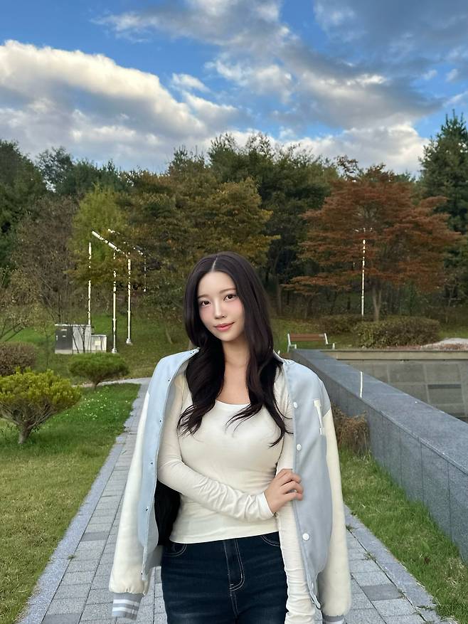 힙한 무스탕이나 레더 자켓을 걸쳐주면 좀 더 캐주얼하고 쿨한 캠퍼스 룩으로 변신 가능합니다! ㅎㅎ