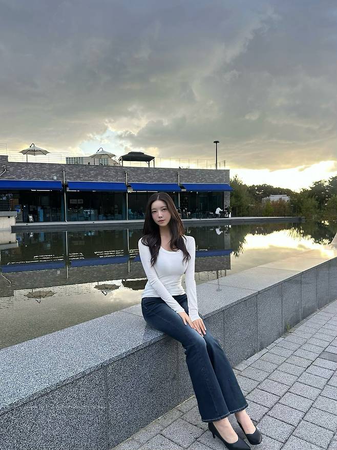 그리고 청순함의 정석인 흰 티에 청바지까지.