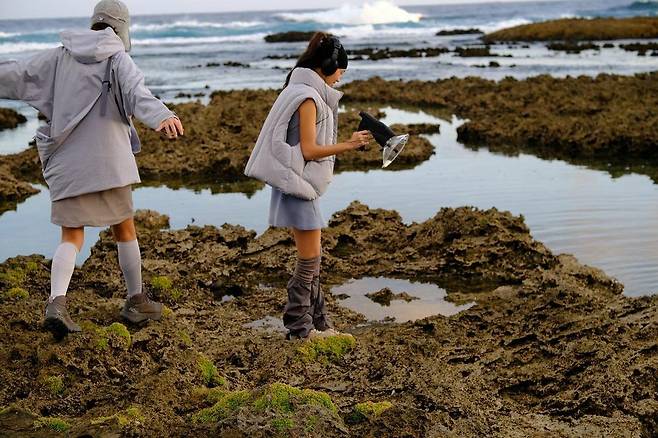 매장 안에는 이제 사용자를 찾기 어려운 슬라이드 필름이 영사기처럼 돌아간다. 하얀 벽면 가장자리에 맺힌 필름의 상(相) 안에는 절벽에 선 채 카메라를 향해 시선을 돌린 여성들 — 모니카 모기(Monika Mogi), 키코 미즈하라(Kiko Mizuhara) 그리고 지빈(Jibin) — 이 서 있다. 채우기보다 덜어낸 흔적이 짙은 공간은 한국의 패션 레이블, 혜인서(HYEIN SEO)가 처음 만든 오프라인 매장이다.