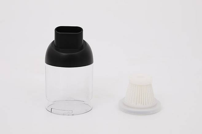 기본적인 디자인은 ㄱ자 형태의 건타입으로, 손잡이 부분이 슬림해 손이 작은 사람이 잡아도 그립감이 뛰어나다. 먼지통은 약 130ml의 용량으로, 투명 재질을 사용해 먼지가 얼마나 모였는지 쉽게 확인할 수 있다.
