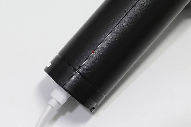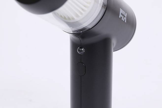 손잡이 앞부분에는 타원형의 전원 버튼이 있으며, 버튼 바로 위에는 LED 램프가 있어서 청소할 때 어두운 곳을 비춰주는 역할을 한다.