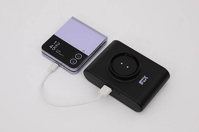 배터리팩은 USB A타입 출력포트도 갖추고 있어서 스마트폰이나 태블릿PC, 블루투스 이어폰 등 스마트기기를 충전하는 보조배터리의 역할까지 할 수 있다.
