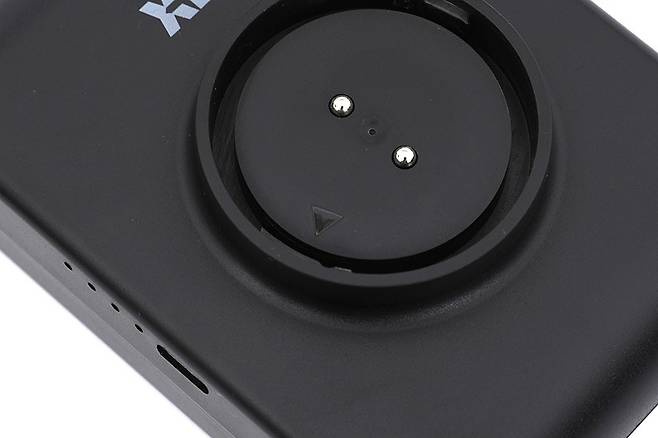 배터리팩은 납작한 박스 형태로, 윗면에 원형의 체결부 가운데에 두 개의 금속 접점을 통해 본체에 전력을 공급해준다.