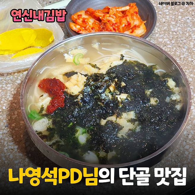 얼마 전 유튜브 알고리즘에 '채널 십오야'가 떴는데 그 영상이 바로 나PD님과 앨빈 고님이 함께 연서시장에 먹방을 찍으셨더라고요. 시장 속에서 가게 사장님과 지나치는데 나PD님의 단골집이라고 소개가 된 곳도 있었답니다!