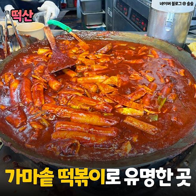 떡산은 이영자님과 아이키님이 동시에 반한 연서시장 맛집인데요. 떡산은 가마솥 떡볶이를 파는 곳으로 이미 일대 지역에선 소문난 맛집이라고 해요. 매일 아침 방앗간에서 뽑은 통가래떡을 72시간 숙성시킨 15가지 양념과 함께 가마솥에 끓여 만드는데요.