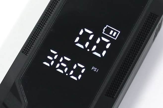 고압튜브 연결 후 전원 버튼을 길게 누르면 디스플레이가 켜지면서 준비 상태가 된다. 전원을 처음 켜면 위쪽과 아래쪽 두 개의 숫자 사이에 자동차 로고가 표시되는데, 자동차 타이어 모드의 경우 기본적으로 36PSI로 설정되어 있다. 설정값을 바꾸려면 전면부의 위아래 화살표 버튼을 이용하면 된다. 아래쪽 숫자는 설정 압력이며, 위쪽 숫자는 현재 압력이기 때문에 동시 표시로 더욱 직관적으로 상태를 확인할 수 있다.
