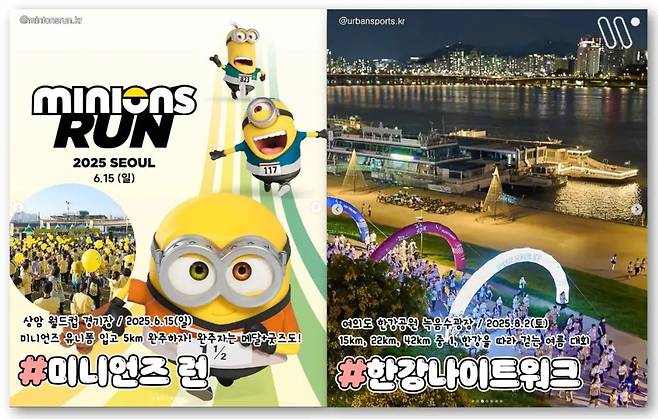 이런 마라톤의 인기 속, 올해 응답이들이 참석하면 좋을 것 같은 다양한 이색마라톤 소식들이 나와 정리해봤어. 귀여운 미니언즈 유니폼을 입고 5km만 완주하면 되는 미니언즈 런, 뛰는게 힘들다면 걷자! 매년 여름 한강을 따라 걷는 대표적인 대회 한강나이트워크 등