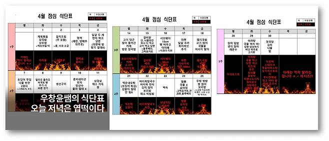 이 콘텐츠의 인기에 힘입어, 디에디트는 '4월 점메추 식단표'를 이미지 콘텐츠로 제작해 인스타그램에 공개했어. 근데 그걸 보면… 진짜 한숨이 나와 😅