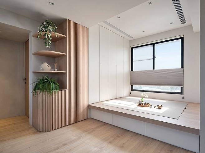 창가를 따라 설치된 원목 평상마루는