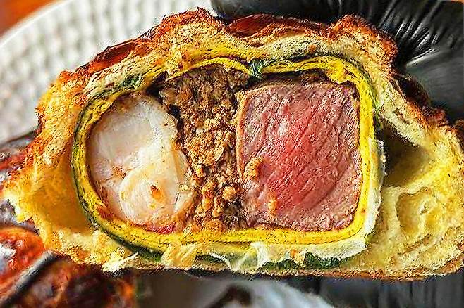 이곳은 아주 특별한 비프웰링턴이 있는 곳이에요. 바로 소고기와 랍스터를 파이에 말아 구워낸 비프웰링턴 인데요! 스테이크만 있어도 맛있을 텐데 랍스터까지 더해진다면 소고기의 육즙과 랍스터의 탱글탱글한 식감이 맛이 없을 수 없는 조합이겠죠?