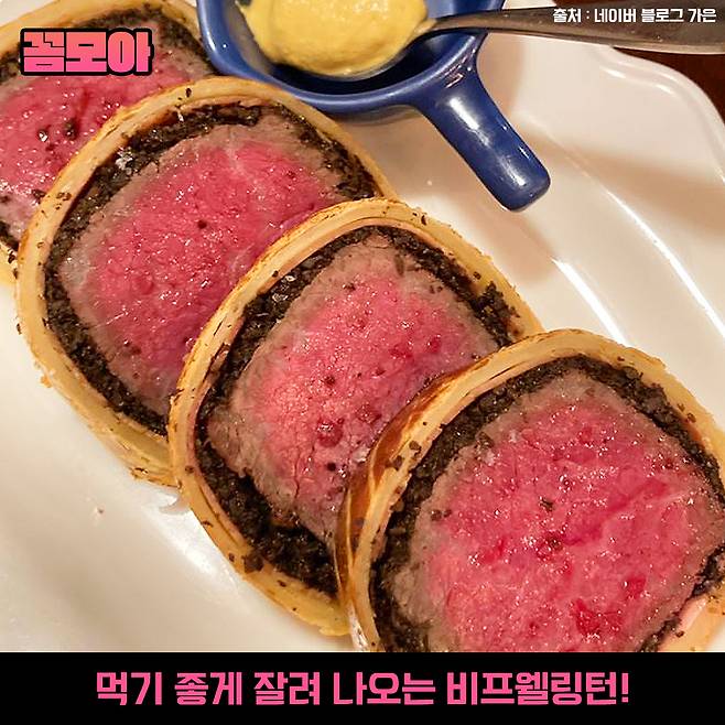 겉은 바삭하며 버터 향도 솔솔 풍기며 소스와 곁들여 먹으면 조화로워 비프 웰링턴 맛집이라고 소문난 곳입니다.