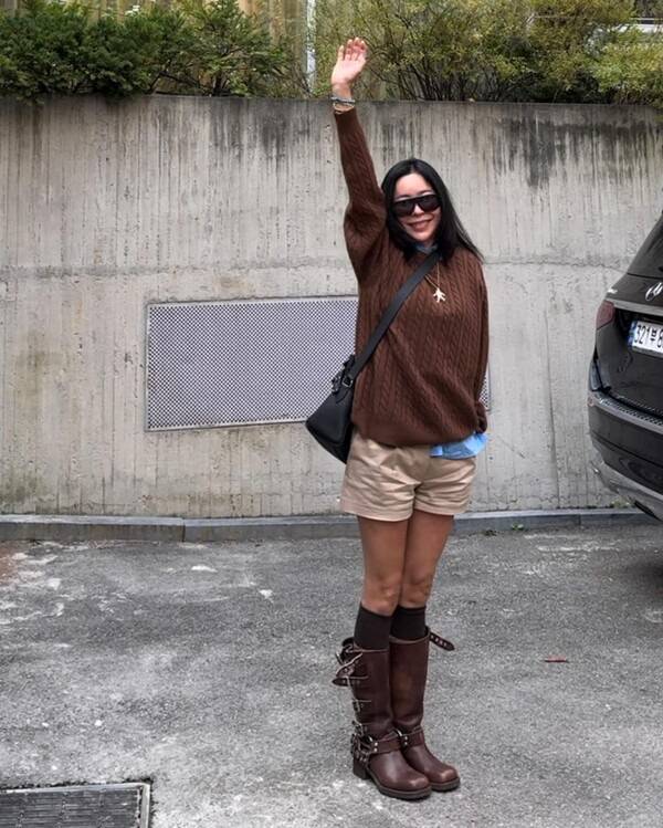원조 패셔니스타 이혜영은 브라운 컬러를 메인으로 가을 스타일링을 보여줬다. 단정하고 깔끔한 패션에 바이크 부츠를 매치하여 캐주얼하면서 세련된 룩을 연출했다.