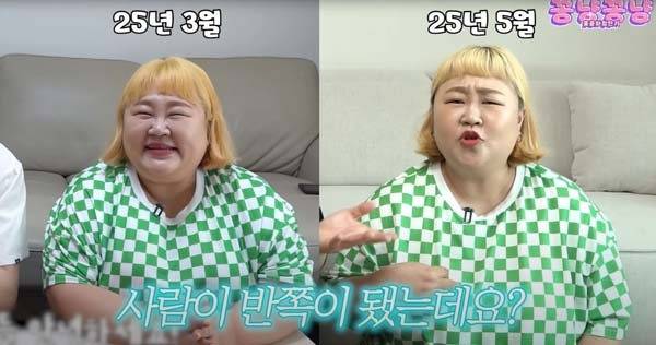 지난 7월 방송에서 홍윤화는 “앞자리가 또 한 번 바뀌었다. 26kg가 빠졌다”며 놀라운 감량 소식을 전했다. 하지만 이어진 그의 말이 더욱 충격적이었다. “40kg 감량해도 아직 정상 체중이 아니다”라고 고백한 것.