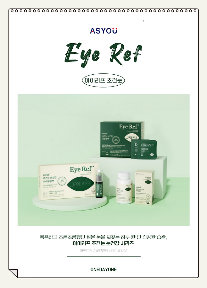 아이리프 조건눈 눈건강 시리즈는 전체적인 눈건강과 함께 안구건조증 케어에 오롯이 집중되어있는 영양제다. 그도 그럴 것이, 건조함을 해결하면 자연스럽게 안구의 컨디션은 회복될 수밖에 없다.
