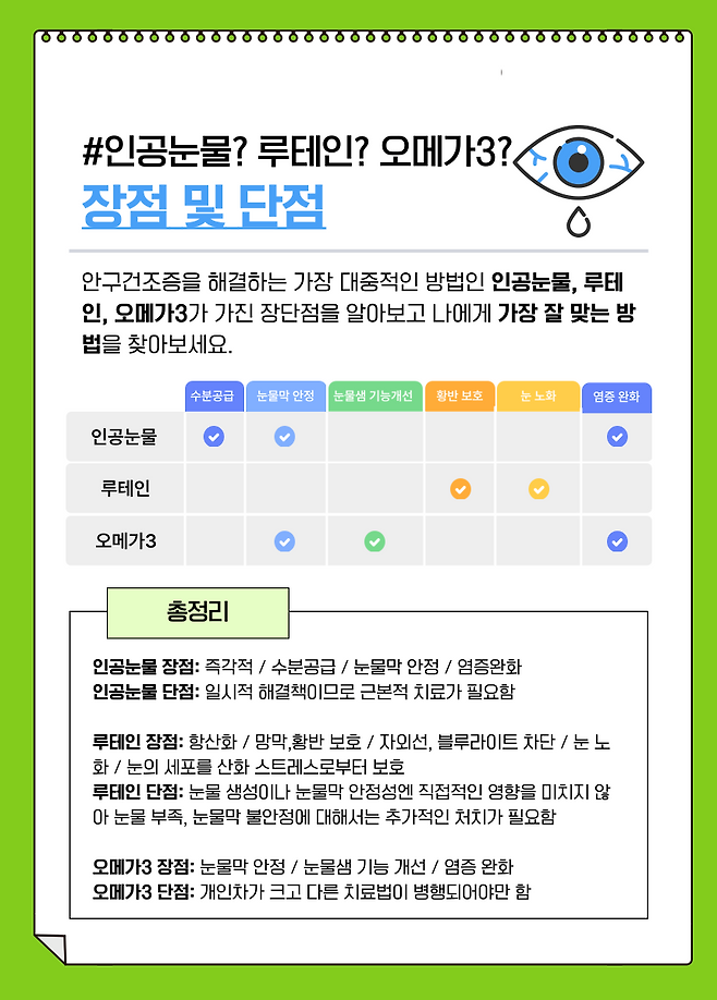 인공눈물 vs 루테인 vs 오메가3
