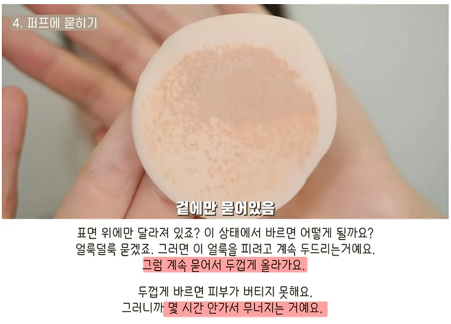 속은 촉촉하고 겉은 산뜻한 상태가 베이스 밀착의 핵심입니다.