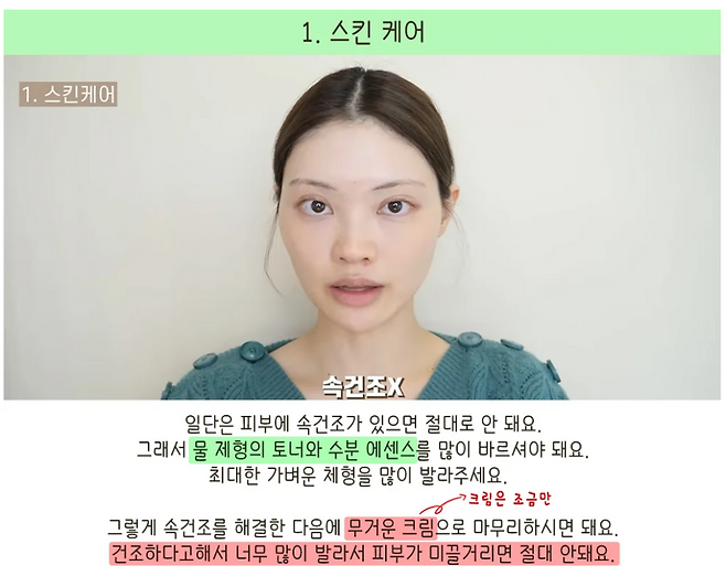 이 타이밍을 놓치면 피부가 금방 당기거나 각질이 올라올 수 있어요.