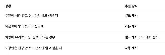 💬 어떤 상황에 어떤 세차가 더 적합할까?