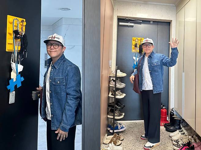 블루 가디건에 톤을 맞춘 청바지 스타일링으로 캐주얼한 무드를 뽐내기도 했습니다.