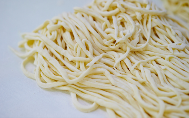 반죽 시 통밀가루의 거친 질감 때문에 물 양을 조금 더 넣는 것이 좋고, 숙성 시간을 길게 하면 면발이 더 부드러워집니다.