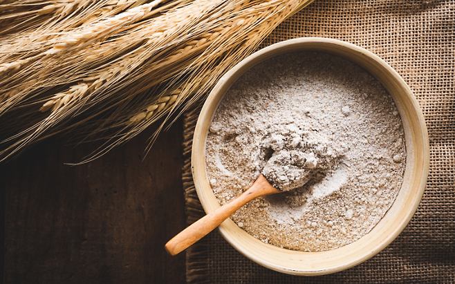 통밀가루는 밀의 겉껍질과 배아까지 그대로 갈아 만든 가루로, 식이섬유와 미네랄이 풍부합니다. 흰 밀가루에 비해 혈당 지수가 낮아 탄수화물 흡수를 늦추고, 식후 혈당 상승을 완만하게 만들어 줍니다.