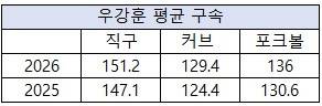 | ▲ 우강훈 구종별 평균 구속 |