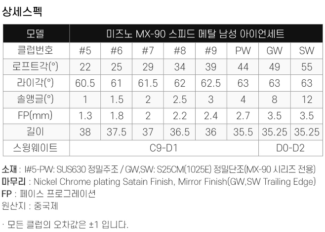 1️⃣ 미즈노 MX-90 아이언세트 5~SW