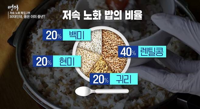 정희원 교수가 고안했다고 하는 이른바 ‘저속노화 밥’은 렌틸콩을 40%, 그리고 백미와 현미, 귀리를 각각 20% 비율로 섞어서 짓는다. “렌틸콩 비율이 너무 많은 것 아냐?”라고 할 수도 있지만, 콩 종류를 따로 챙겨먹기 번거로워 하는 사람들이라면 차라리 훨씬 나은 방법일 수 있다.