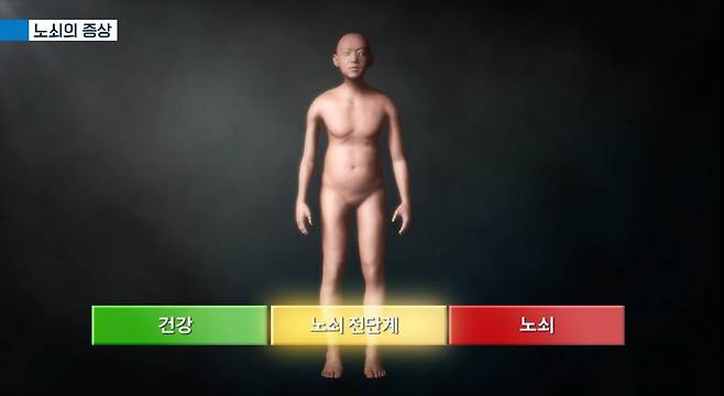 흔히 노화라고 하면 피부 탄력이 떨어지거나 체력이 약해져 금방 지치거나 하는 모습을 떠올린다. 이 또한 틀린 것은 아니지만, 그보다 더 범위를 넓혀서 식욕 감퇴, 체중 감소, 근력 약화, 느려지는 걸음 속도 등까지 포함해야 한다. 걷다가 종종 다리가 풀리는 느낌을 받는 것 또한 노화가 진행되고 있다는 신호일 수 있다.
