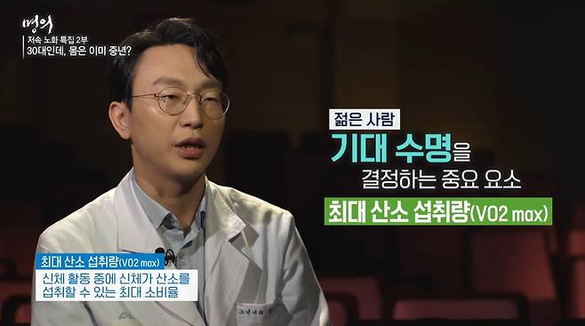 정희원 교수는 운동 비중에 대해서도 조언을 남겼다. 젊었을 때는 유산소 운동 60~70%, 근력 운동 30~40% 비율로 할 것을 권장한다. 이유는 간단하다. ‘기대 수명’을 결정하는 데 있어 ‘최대 산소 섭취량(VO2 Max)’이 중요하기 때문이다.