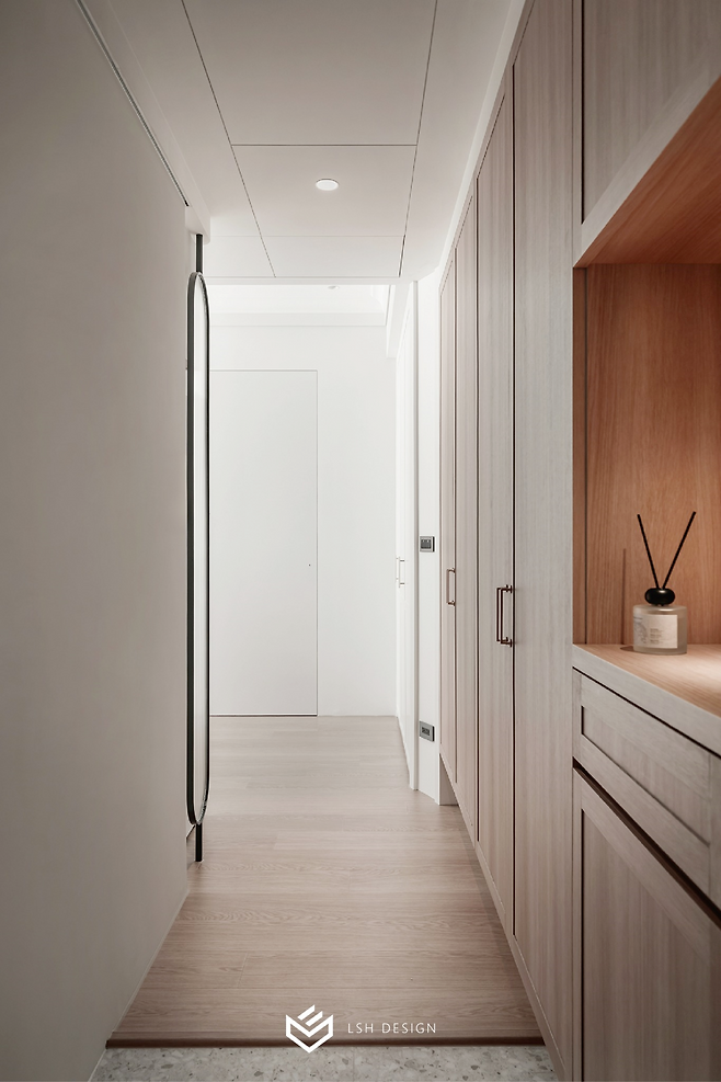특히 가운데에 배치된 슬림한 선반은 열쇠나 디퓨저 등 작은 소품을 올려두기에 안성맞춤입니다.