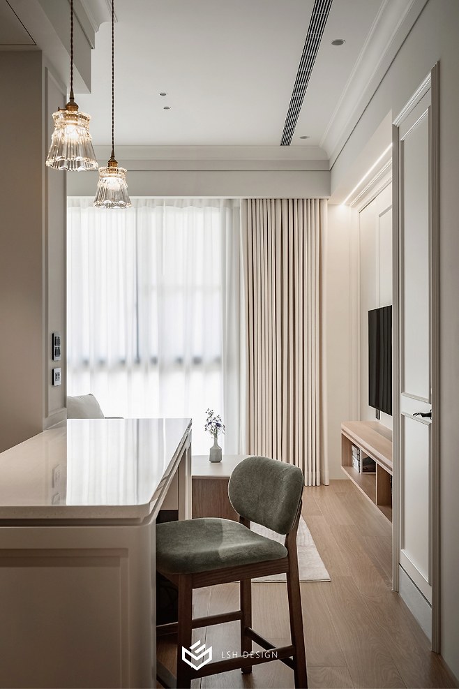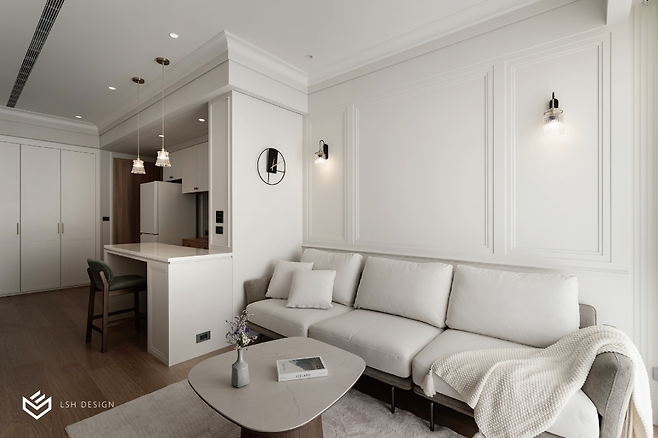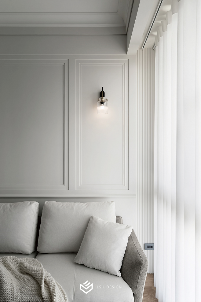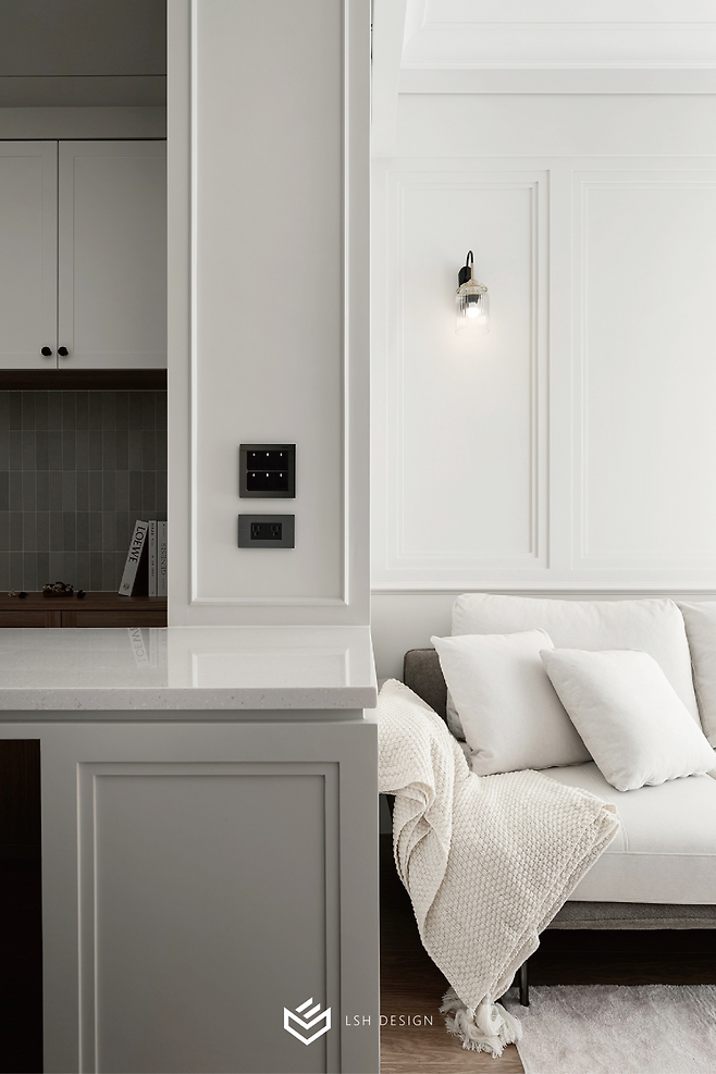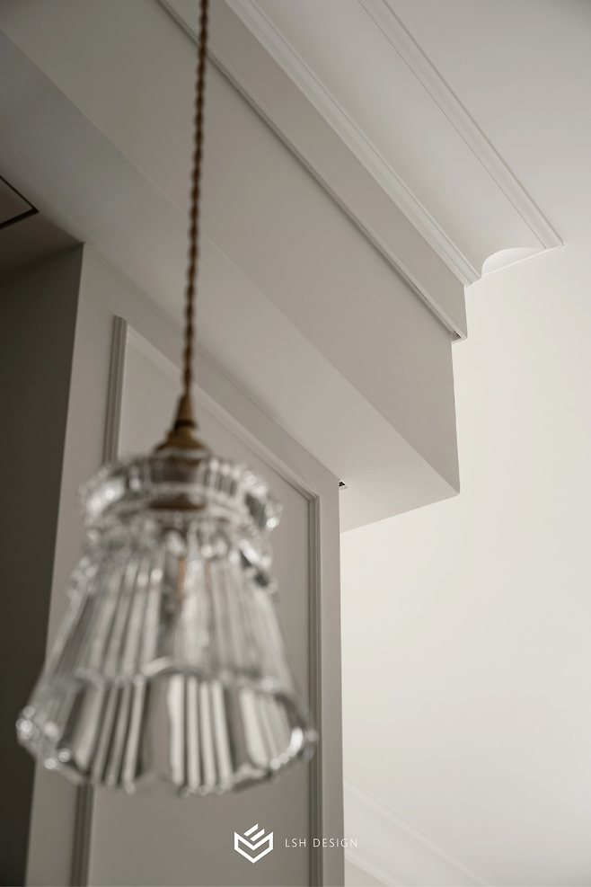 과하지 않은 몰딩 선이 공간을 단정하게 정돈하고, 무광 도장 마감은 조명의 은은한 빛을 받아 공간에 입체감을 불어넣습니다