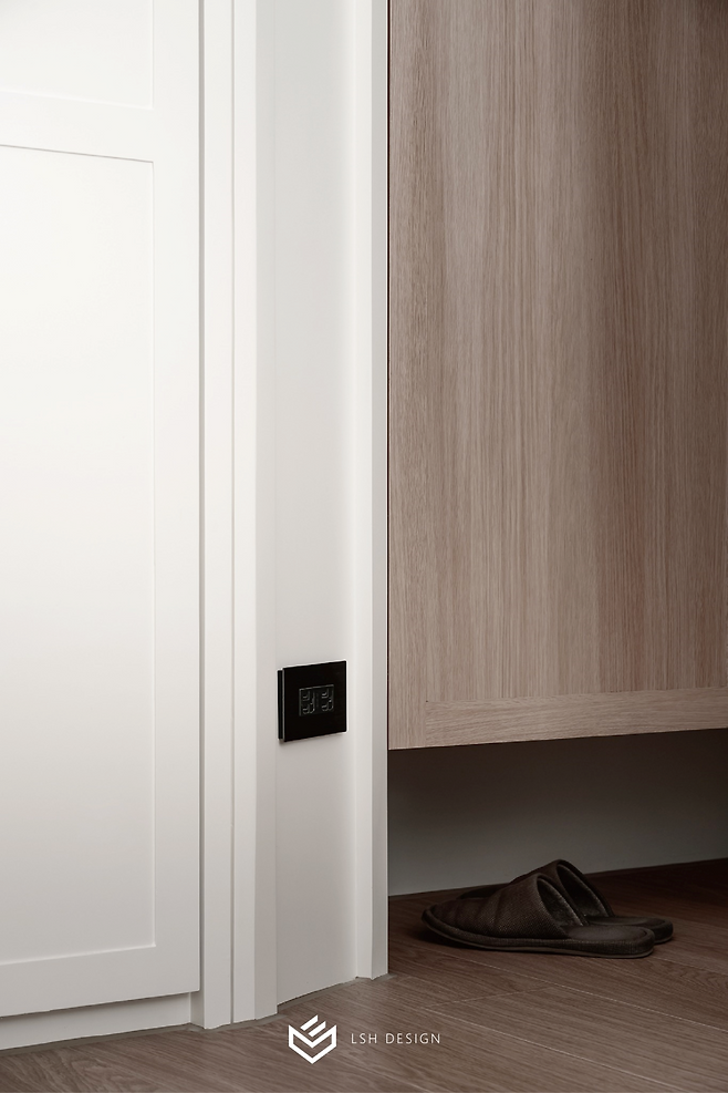 실용성과 감각적인 디자인 모두 놓치지 않은 화이트&우드 현관 인테리어죠.
